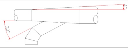 2)斜插合流三通采用30度斜插,局部阻力系數(shù)ζ。30度時(shí) =0.18,45度