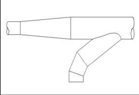 時(shí)ζ=0.25),大小頭風(fēng)管坡度較平緩(集塵風(fēng)管大小頭漸變角度不宜超過(guò)15度,角度愈小壓損愈小,風(fēng)量分配亦更平衡),在引射過(guò)程中能量損失較少,故能將支管和直管之流速控制為一定,較利于粉塵的收集,不易在風(fēng)管內(nèi)堵塞。使始末端靜壓基本一致。(如下圖所示)